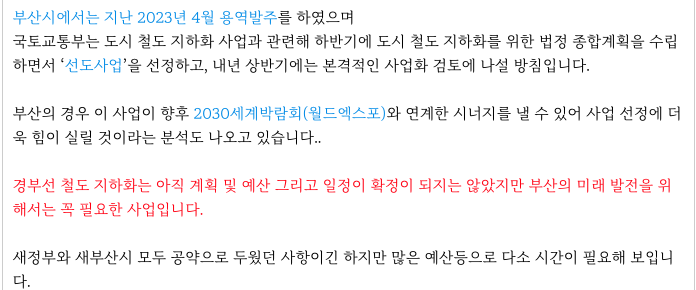 아직 미정입니다. 그러나 부산의 균형적 발전을 위해 반드시 필요한 부분이기는 합니다.