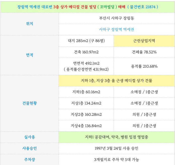 부산 장림역 역세권 메디컬 상가 건물 빌딩 ( 꼬마빌딩 ) 매매 물건 ( 장림동 상가 )