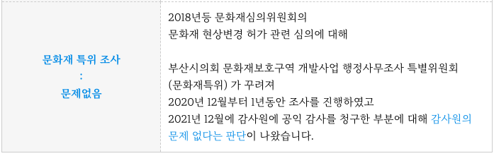문화재로 인해 타 구역들과 비교시 시간적으로는 조금더 소요되는 리스크가 있고
