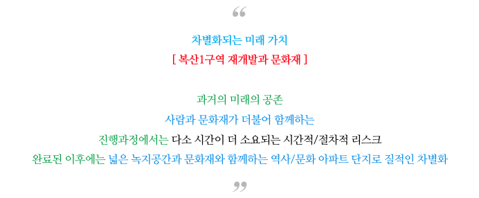 사람과 문화재가 더불어 함께하는 재개발 구역이라고 할 수 있습니다.