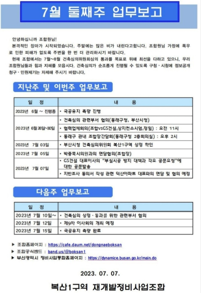 모두가 조합원으로 한 마음 한뜻으로 서로를 이해하고 잘 진행되기를 바랍니다.