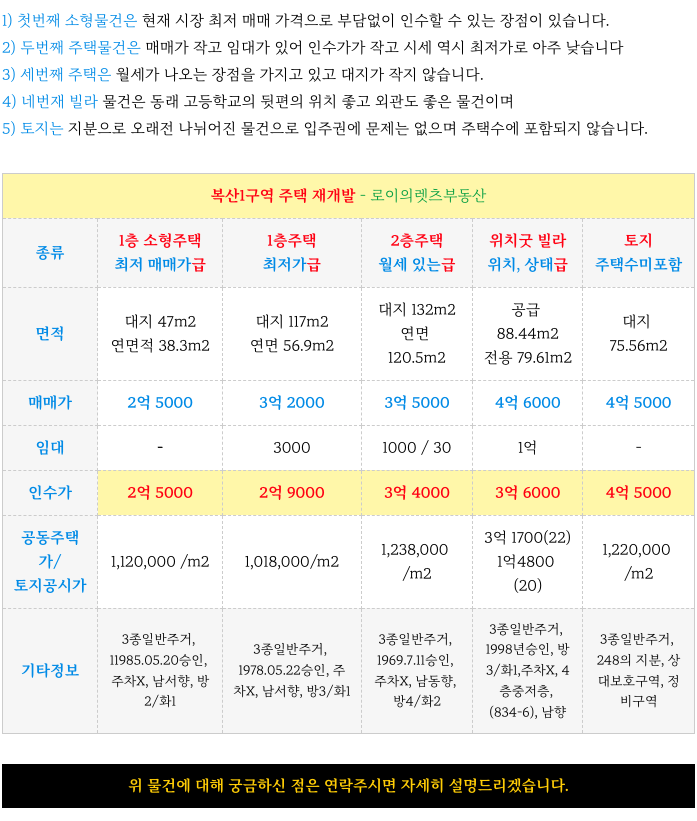 복산1구역 재개발 최거 매물들 정리하여 소개해 드립니다.