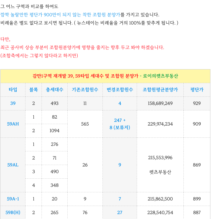 - 낮은 조합원 분양가 + 진행대비 시세가 아주 저렴한,