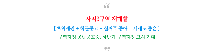 사직3구역 재개발 예정지의 특징을 다시 정리하여 드립니다.