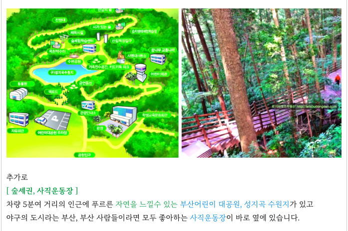 인근에 초읍 성지곡수원지, 어린이 대공원이 차량 5분여 거리에 위치해 있기도 합니다.
