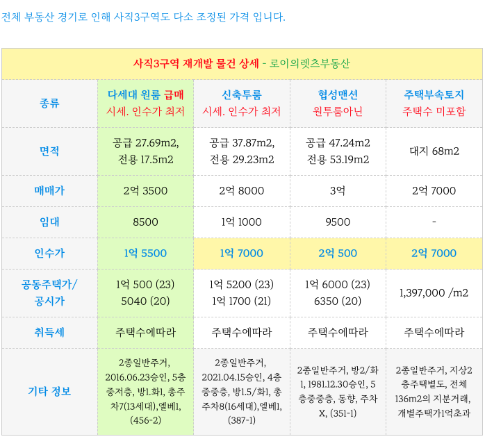 역세권 사직3구역 재개발 최저 소액 매물 ( 1.5 인수 ) & 진행 상황 정리