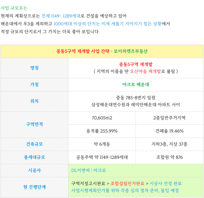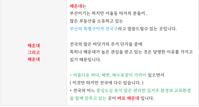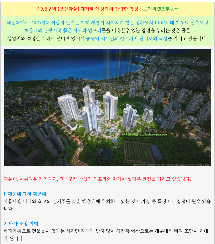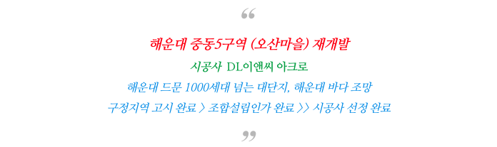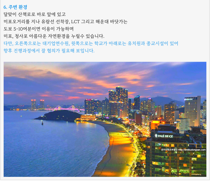 조합원의 다소 비율이 높은 것이 단점이기도 하지만 해운대라는 특성상 주변 시세가 워낙 좋아