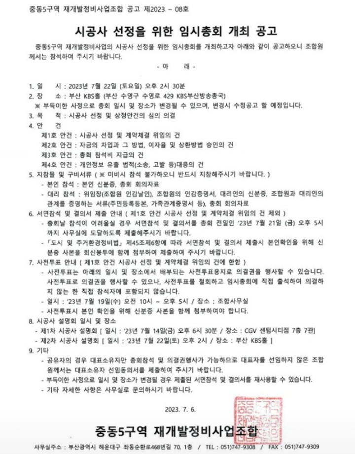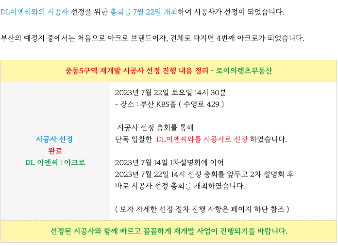 중동5구역 (오산마을) 재개발 은 07.22 시공사가 선정이 되었습니다.