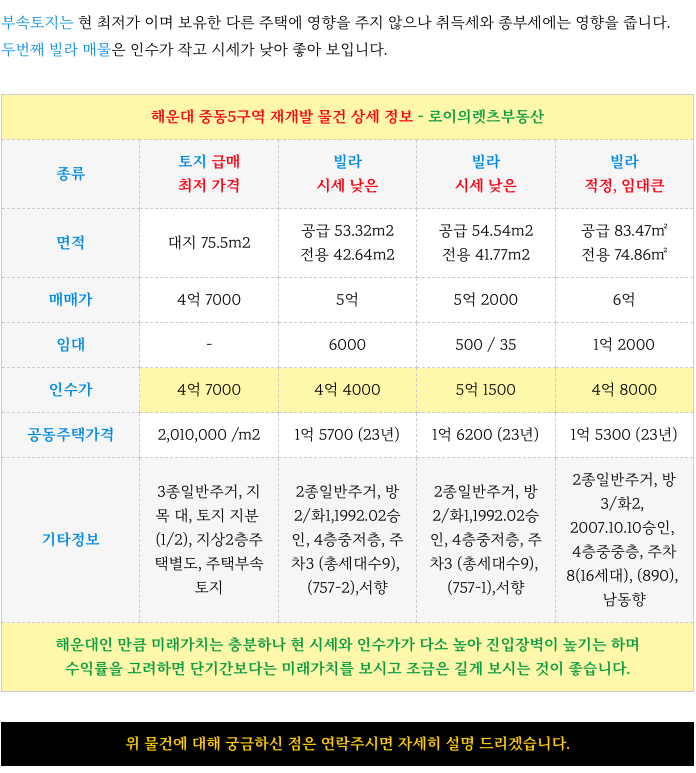 중동5구역 재개발 가능한 최저 물건 정보를 소개해 드립니다.