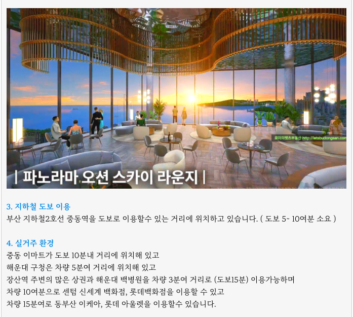2) 도보로 해운대 해수욕장과 전국적 관광지의 좋은 상권 인프라을 이용할수 있는 장점을 누리는 것은 물론,