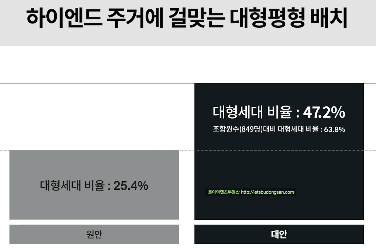 시공사 선정 고시시 예상 세대수가 다소 감소하였고 해당 기준을 바탕으로 시공사에서 제안되었습니다.