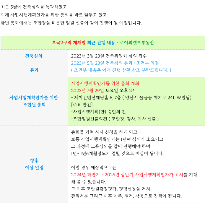 (사시총회) 부곡2구역 재개발 : 3.0 소액 급매물 & 사업시행계획인가를 위한 총회 소식