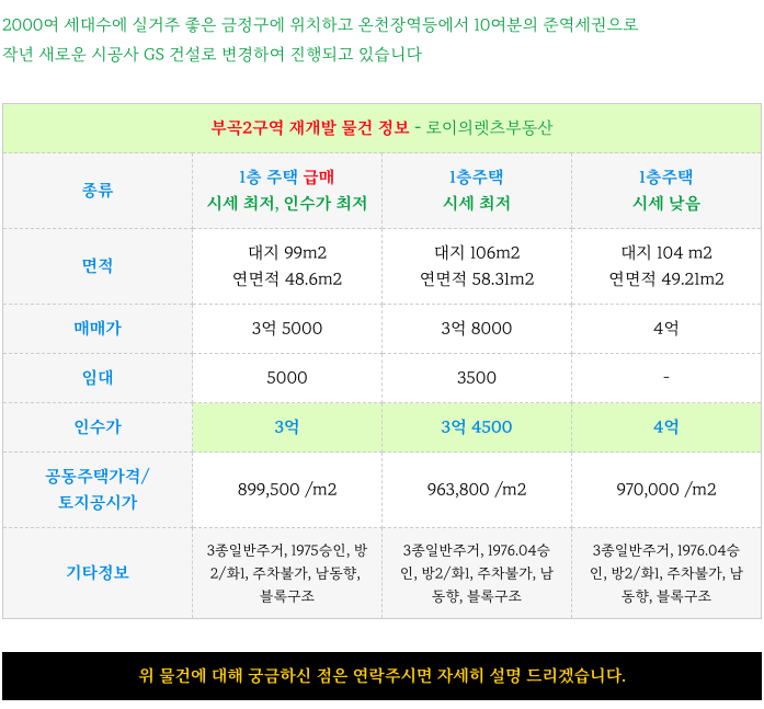 부곡2구역 재개발 소액 급 매물 소개 해드리겠습니다.