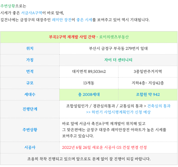 부곡2구역 재개발 ( 자이 더 센터니티 ) 현재 진행상황 등 추가 정보는 아래 페이지를 참고 부탁드립니다.