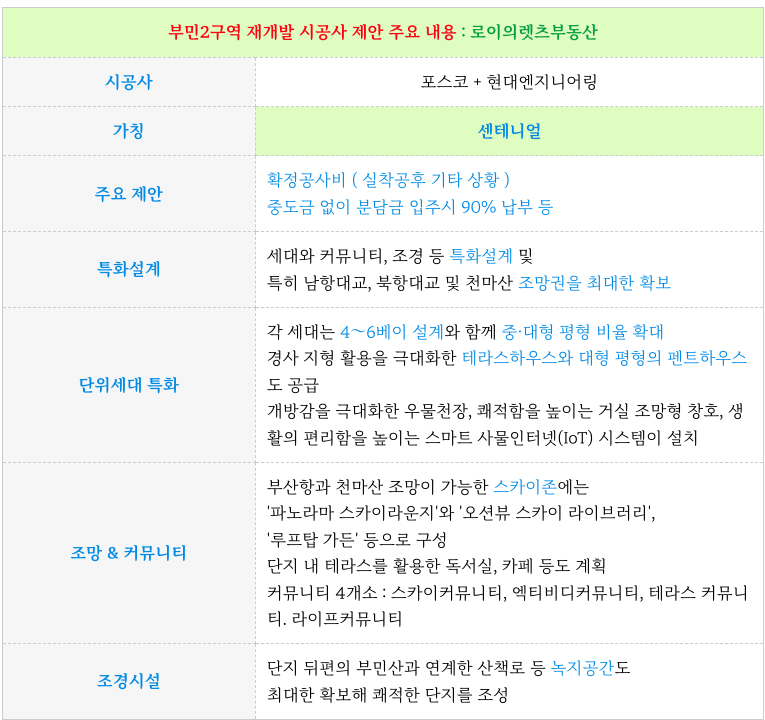 부민2구역 재개발 시공사의 주요 제안 내용을 간략히정리 드립니다.