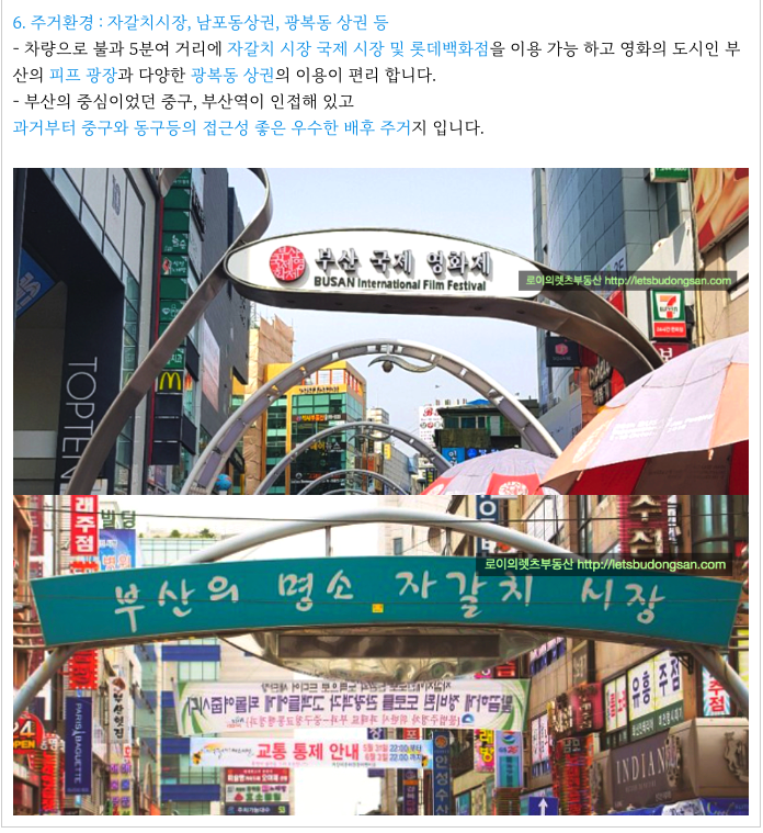 -초품아, 역세권, 부산대병원, 조망, 자갈치시장, 남포동-광복동상권