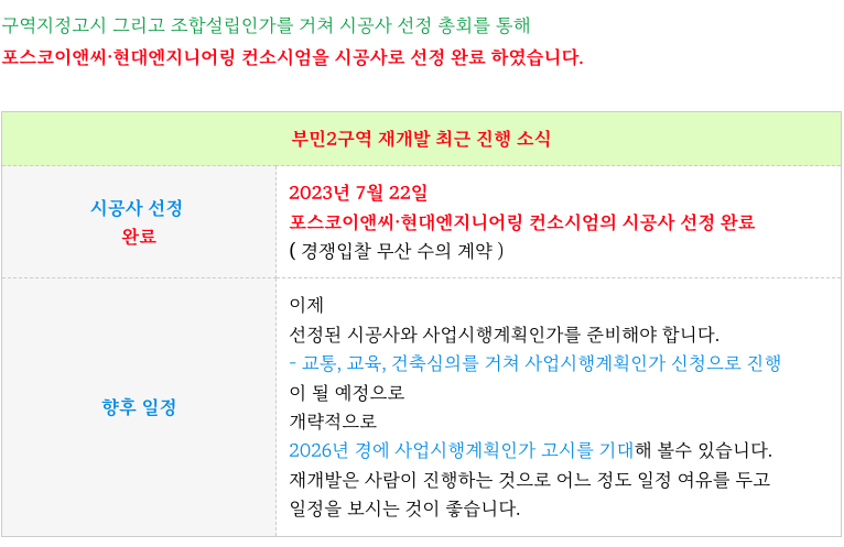 부민2구역 재개발은 시공사 선정이 완료 되었습니다.