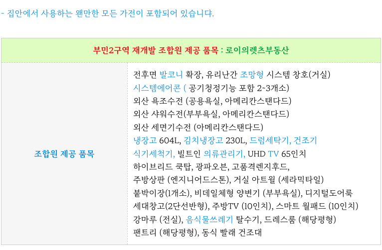 부민2구역 재개발의 조합원 제공 품목 내용입니다.