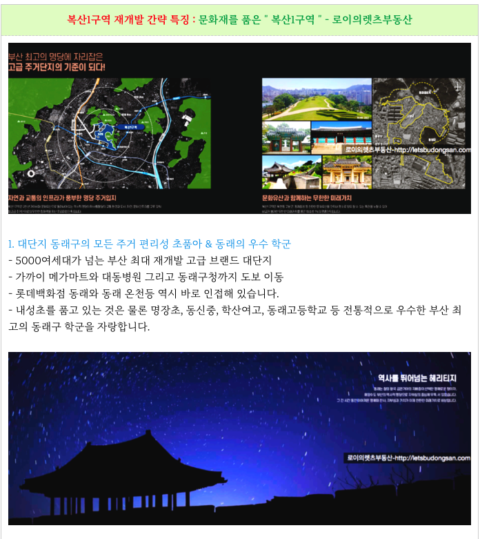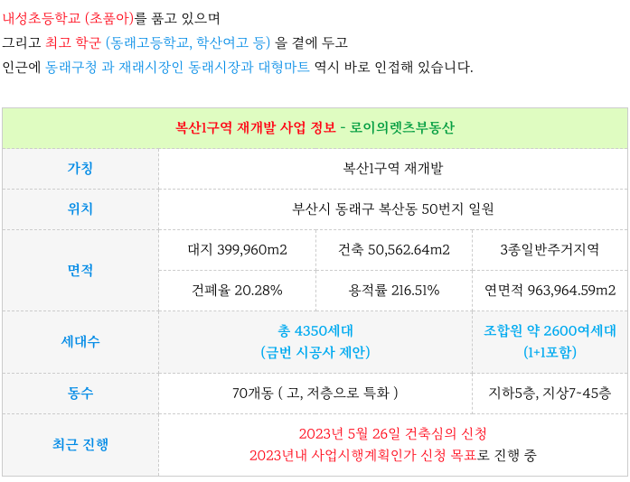 동래구 복산1구역 재개발 의 특징을 다시 한번 간략히 정리하였습니다.