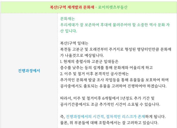 재개발의 진행과정에 있어 문화재의 보존에 더 관심을 기울여 모든 부분이 진행이 되어야 합니다.