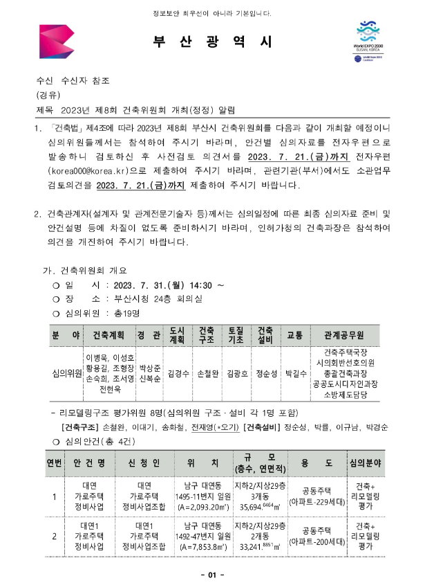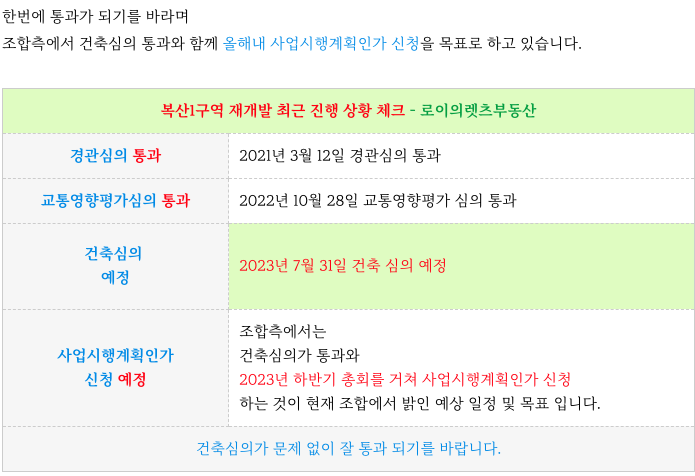 복산1구역 재개발 은 7월 31일 건축심의를 앞두고 있습니다.