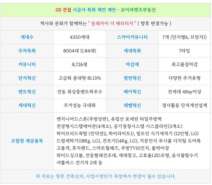 동래구 최대 단지인 4300여세대의 브랜드 대단지 질적 차별회의 신축 아파트로 조성이 될예정으로