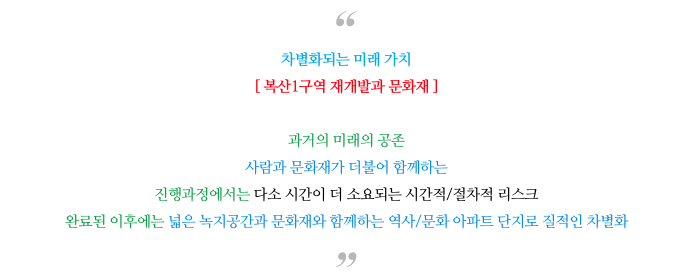 사람과 문화재가 더불어 함께하는 재개발 구역이라고 할 수 있습니다.