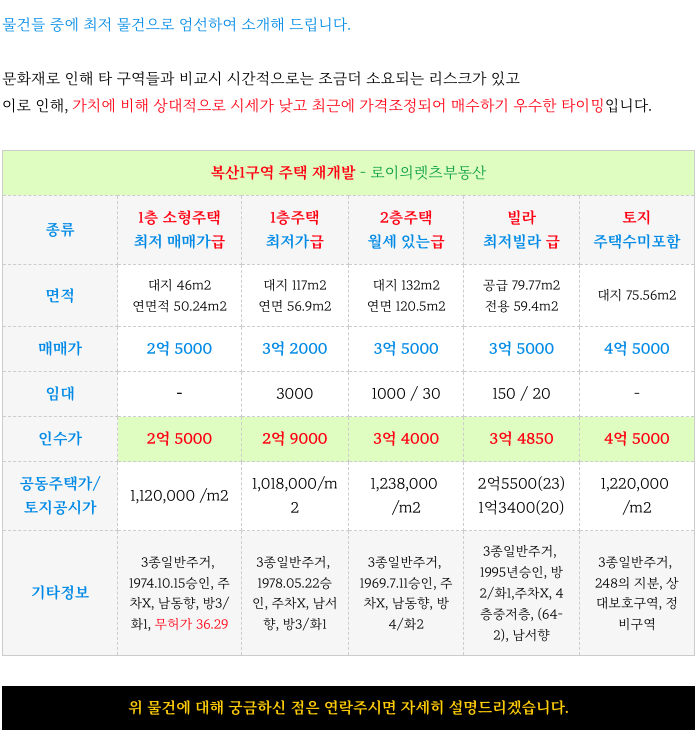복산1구역 재개발 최저 매물들 정리하여 소개해