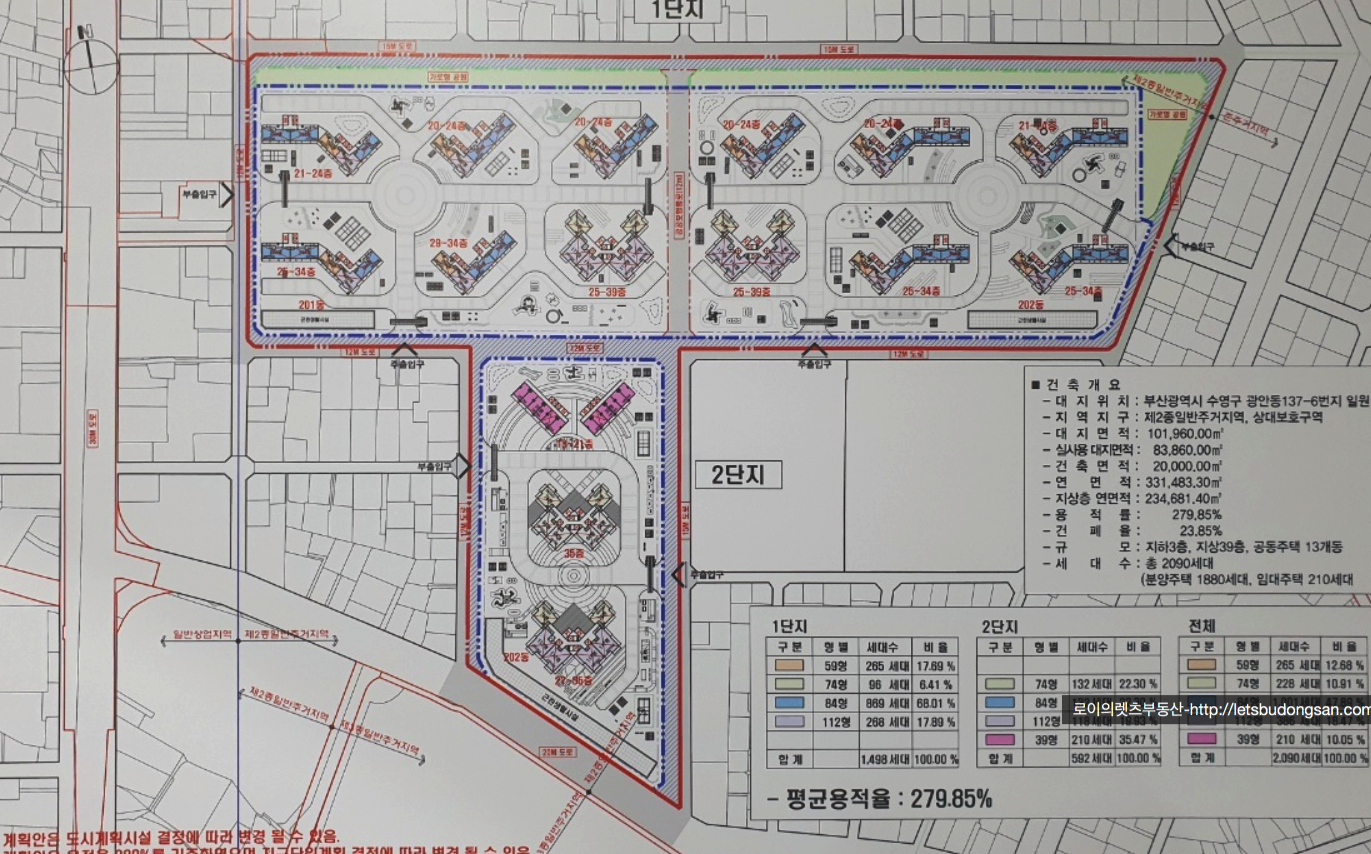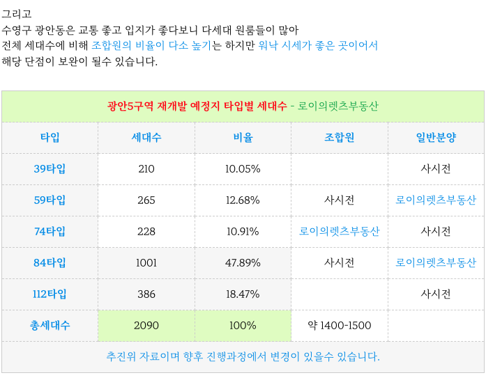 광안5구역 재개발 예상 타입별 세대수 입니다.