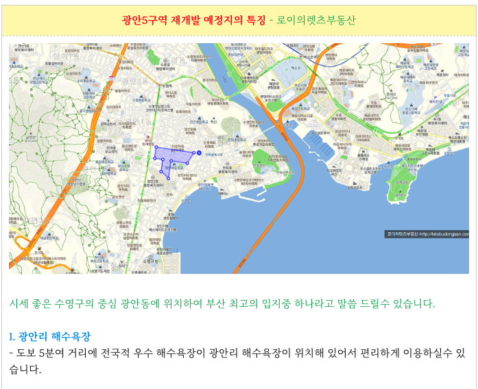 광안5구역 재개발 예정지의 특징 들을 간략히 정리하였습니다.