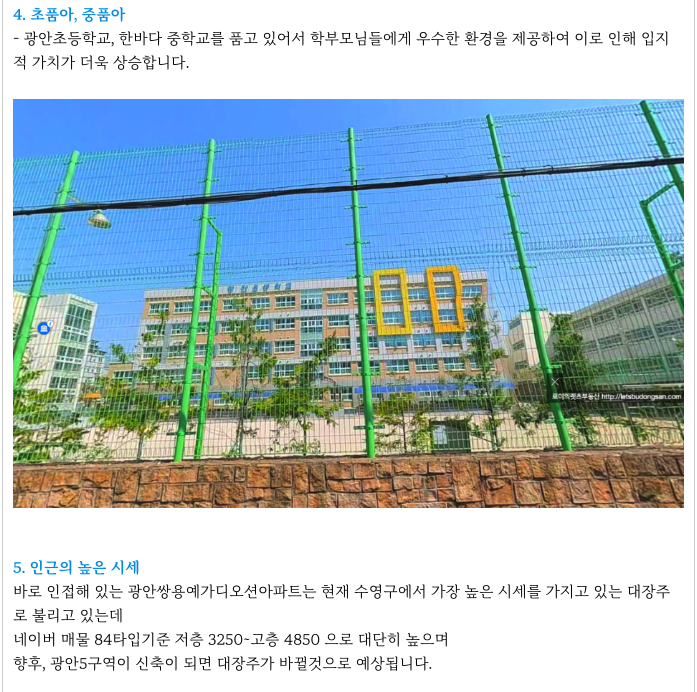 광안초등학교, 한바다 중학교를 품고 있는 초,중품아의 장점과