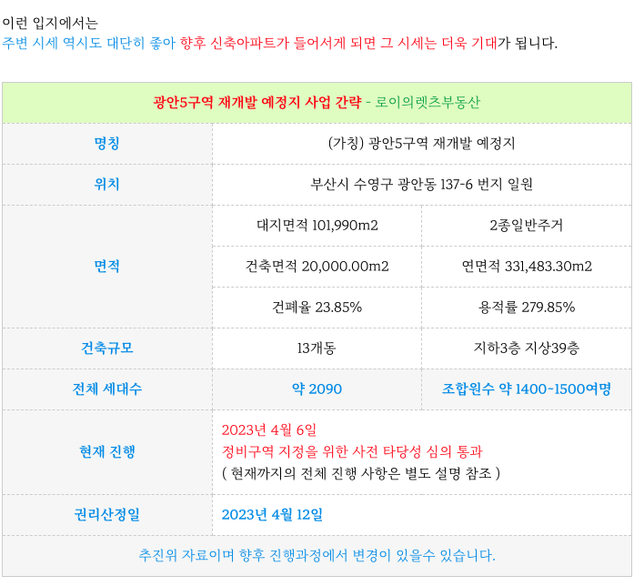 광안5구역 재개발 은