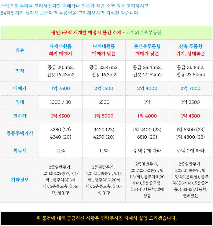 수영구 광안5구역 재개발 현 가능 좋은 소액 매물