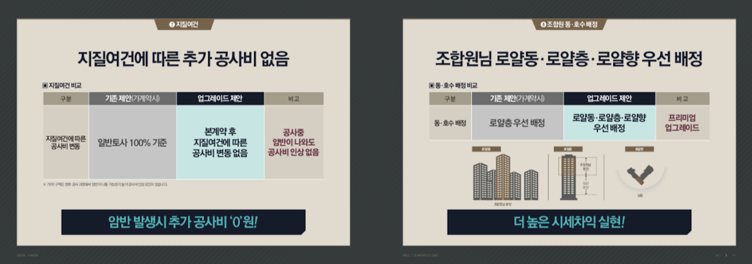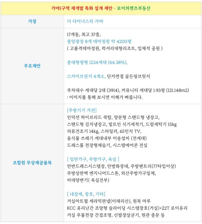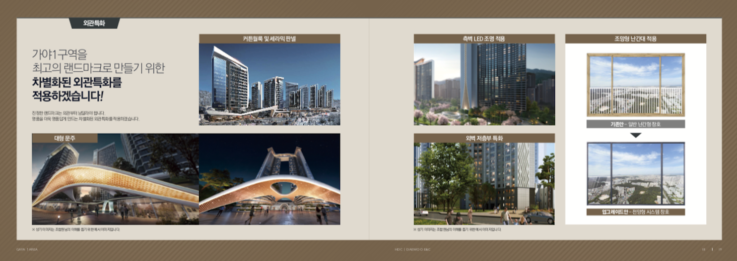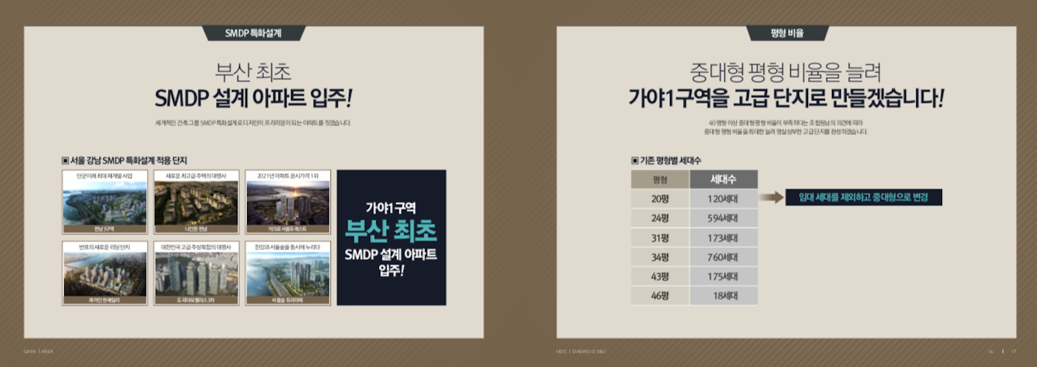 가야1구역 재개발 의 시공사에서 제안한 부분 SMDP외관특화 고급화 등 간략한 내용 입니다.