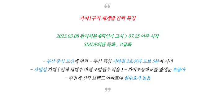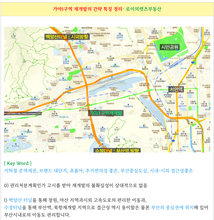 가야1구역 재개발 의 특징을 간략히 정리 해드립니다.