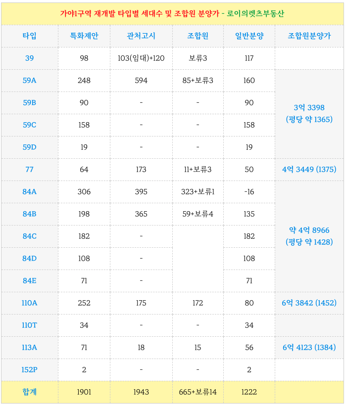 가야1구역 재개발 각 타입별 매물 소개 해 드리겠습니다.