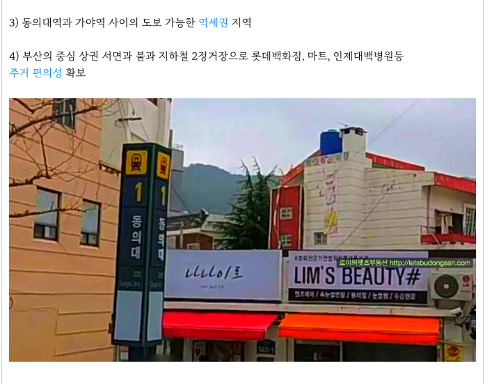 부산 중심 서면에서 지하철 2개 정거장 거리의 부산 중심도심에 위치하고 있어