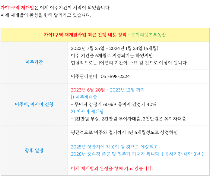 가야1구역 재개발 매물과 진행 (이주시작 07.25)