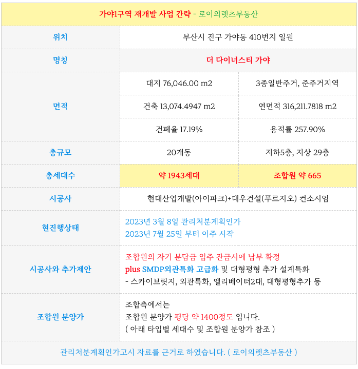더 다이너스티 가야 가야1구역 재개발 이주시작소식과 타입별 매물을 소개해 드리겠습니다.