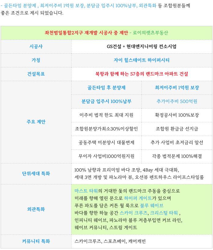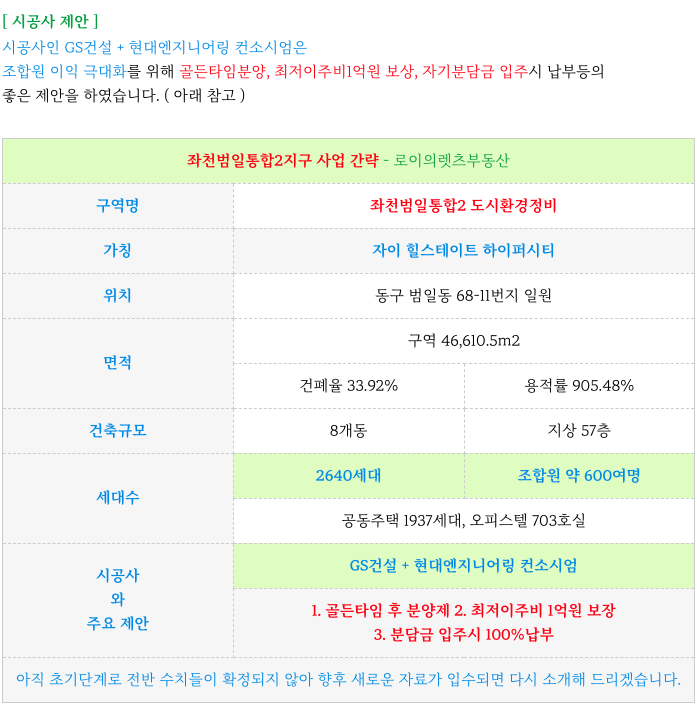 좌천범일통합2지구 재개발의 시공사 제안안을 소개해 드립니다.