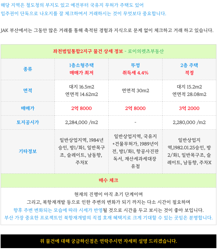 안녕하세요. 로이의렛츠부동산 입니다. 제이에이케이 부산 부동산중개법인은 언제나 양질의 정보를 신뢰있...
