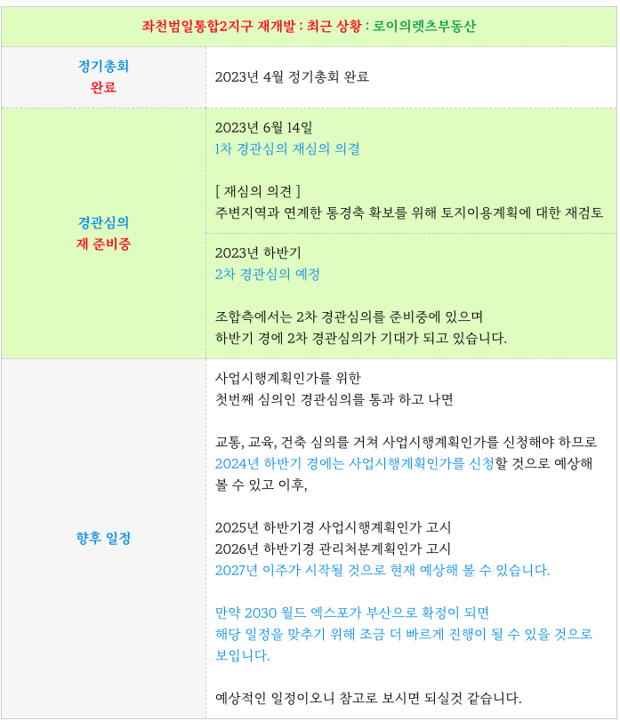 좌천범일통합2지구의 초기 부터 최근 까지의 진행상황 등 추가 정보는 아래 페이지를 참고 부탁드립니다.