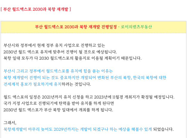 그 이유는 2030 월드 엑스포 이슈와 이와 관련된 북항 재개발 때문입니다.