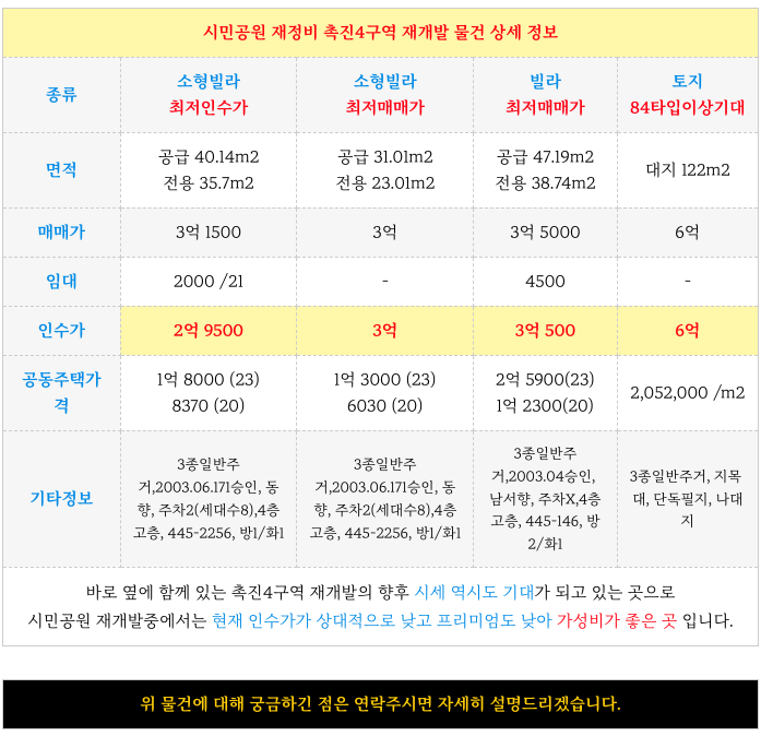 촉진4구역 재개발 물건도 추가로 소개해 드리겠습니다.