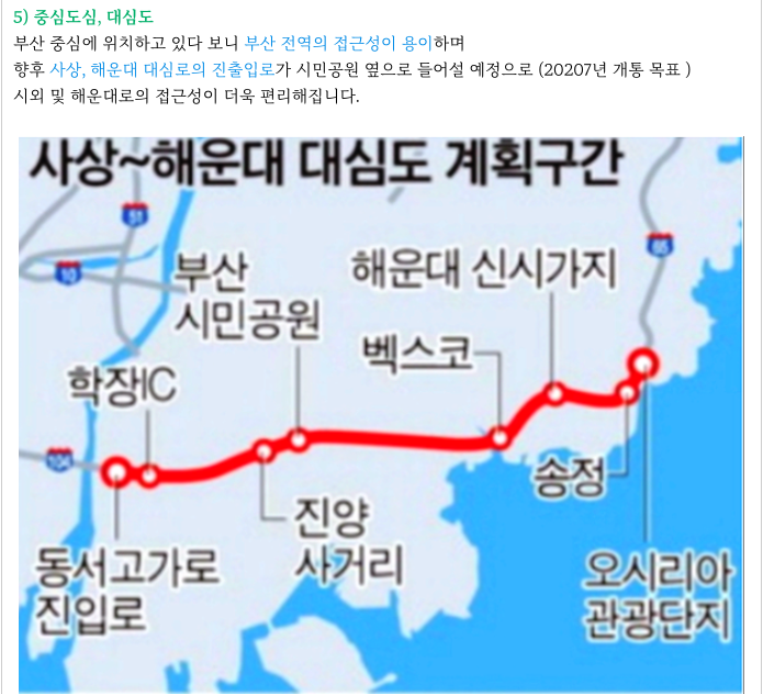 그리고, 기장에서 사상으로 이어지는 대심도 역시 교통적으로 큰 호재가 됩니다.