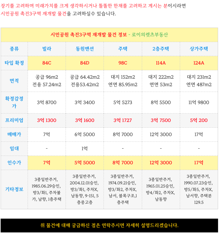 관처신청 앞두고 있는 - 촉진3구역 재개발 - 각 타입별 엄선 매물