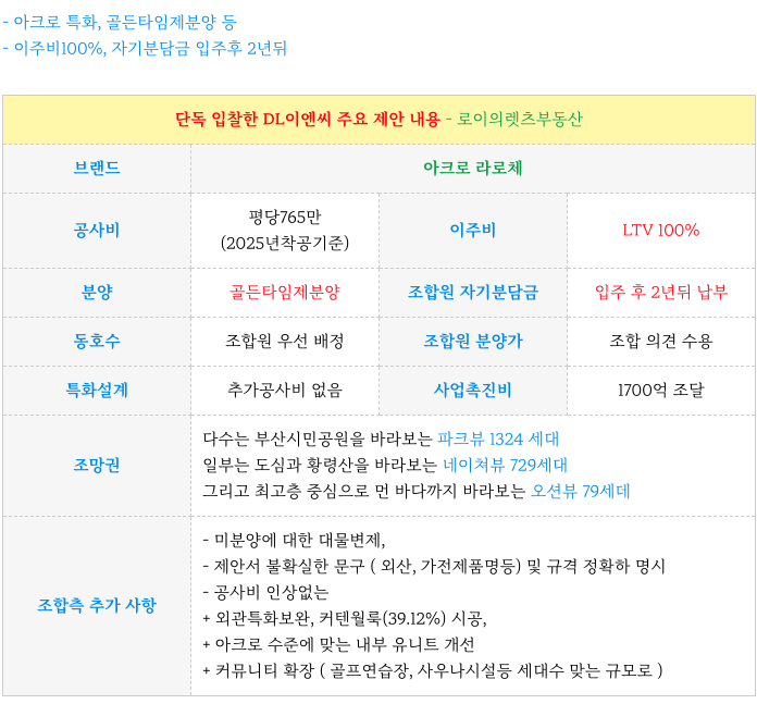 시민공원 촉진3구역 재개발의 시공사( DL이엔씨)의 제안 내용을 간략히 정리 드립니다.