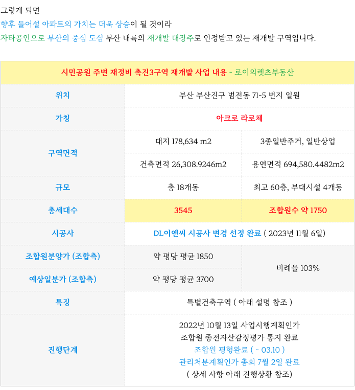 안녕하세요. 로이의렛츠부동산 ( 제이에이케이 부산 부동산중개법인 ) 입니다. 오늘은 촉진3구역 재개발 관...