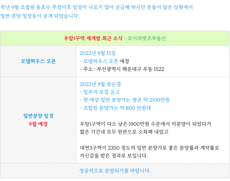 | 민락3구역 재개발 소액 매물 & 진행소식 (0) | 2023.08.25 |