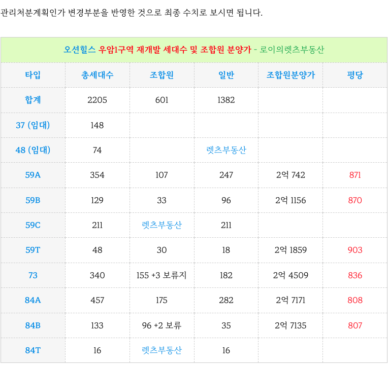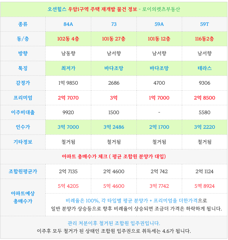 우암1구역 재개발 타입별 최저 물건 소개해 드리겠습니다.